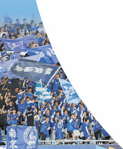江苏南京,南京队在“苏超”1/4决赛中对阵连云港队,球迷加油助威。