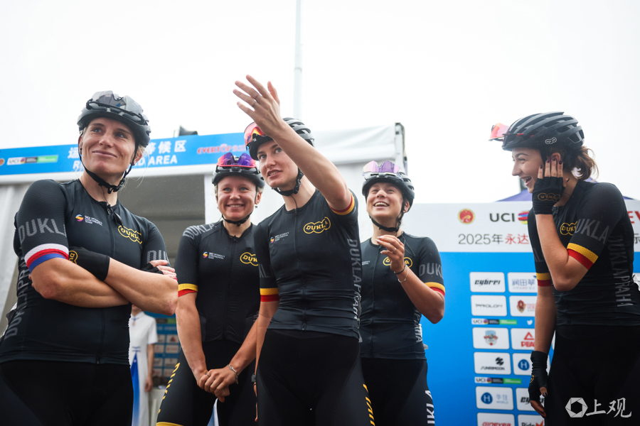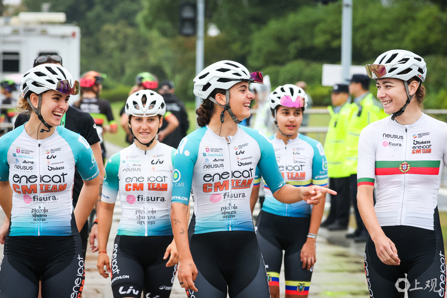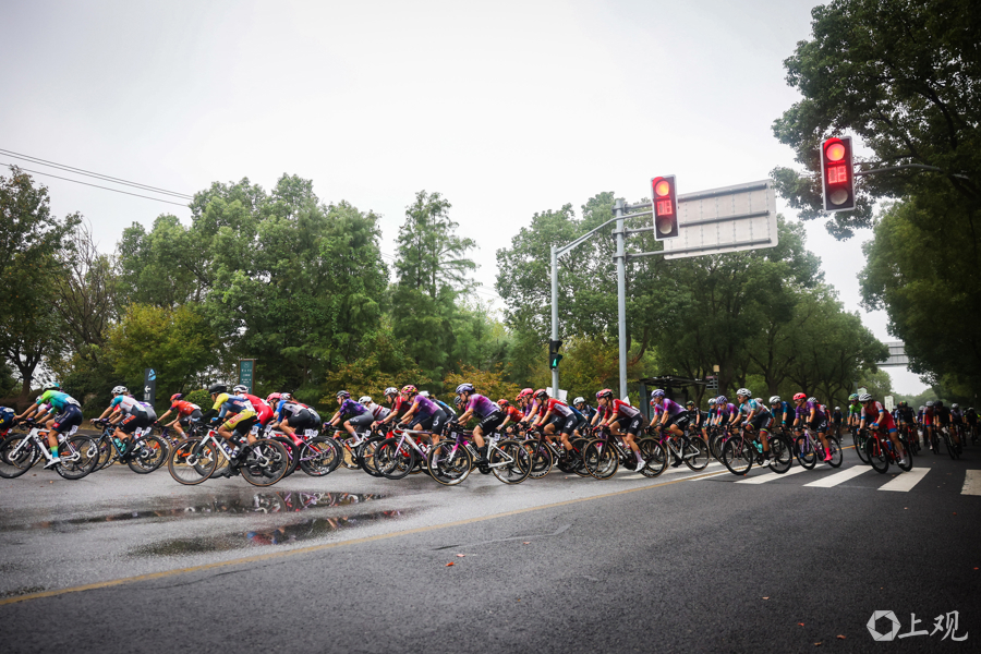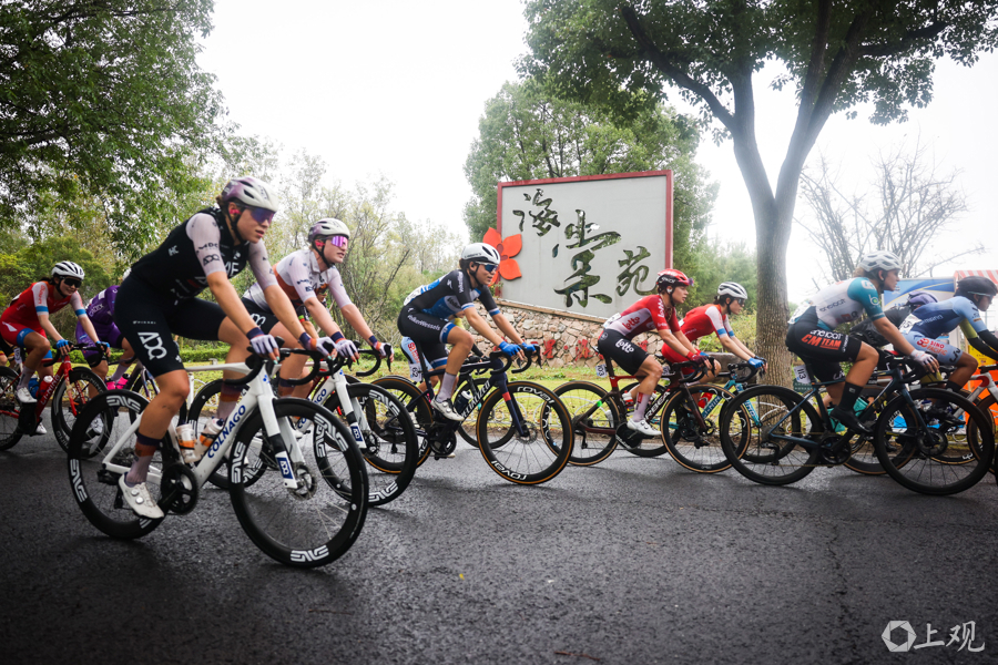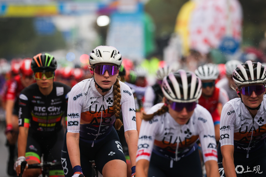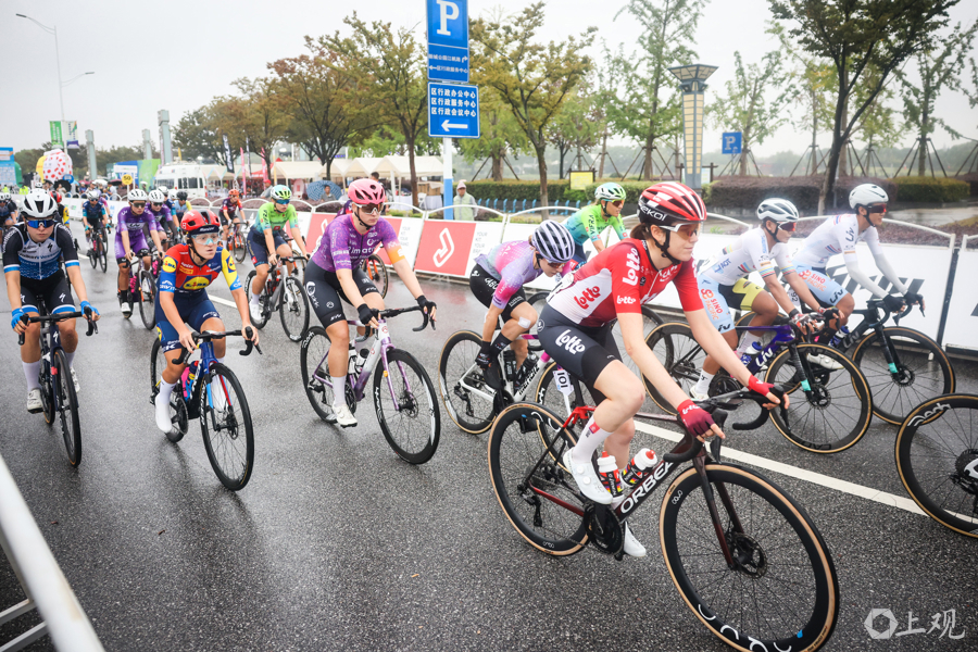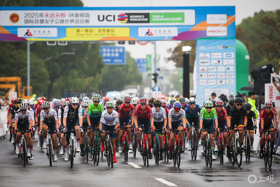 10月14日,2025年环崇明岛国际自盟女子公路世界巡回赛在崇明新城公园鸣笛开赛。