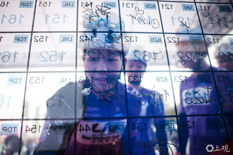 车手赛前在签名板上逐一签名。