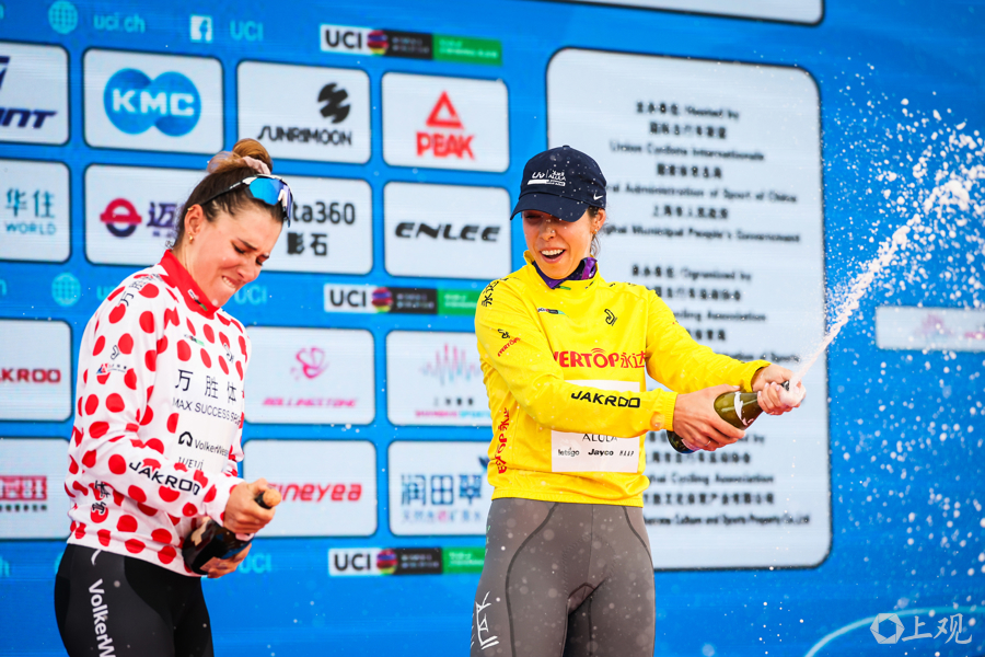 最终,来自丽芙-埃尔奥拉-杰科车队的乔治娅·贝克不仅以2小时30分55秒一举夺得首赛段冠军,成功穿上象征个人总成绩领先的“黄杉”,同时还将代表冲刺最佳的绿衫一并收入囊中。